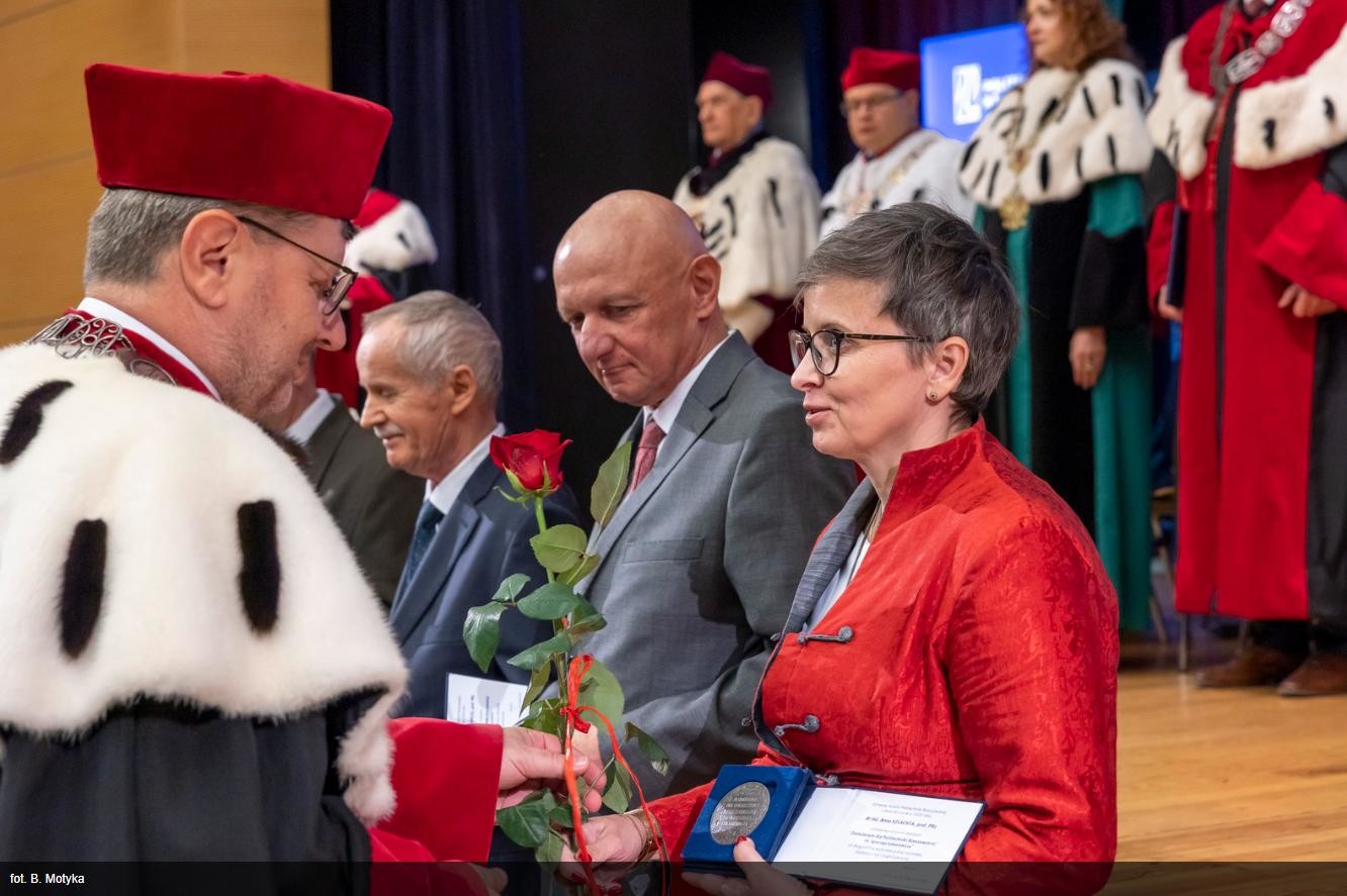 W dniu 3.10.2025r., podczas uroczystej inauguracji nowego roku akademickiego, dr inż. Anna Szlachta, prof. PRz została odznaczona honorowym wyróżnieniem nadawanym od 1976 roku wybitnym pracownikom oraz osobom spoza uczelni szczególnie zasłużonym dla Politechniki Rzeszowskiej - medalem "Zasłużonym dla Politechniki Rzeszowskiej im. Ignacego Łukasiewicza".