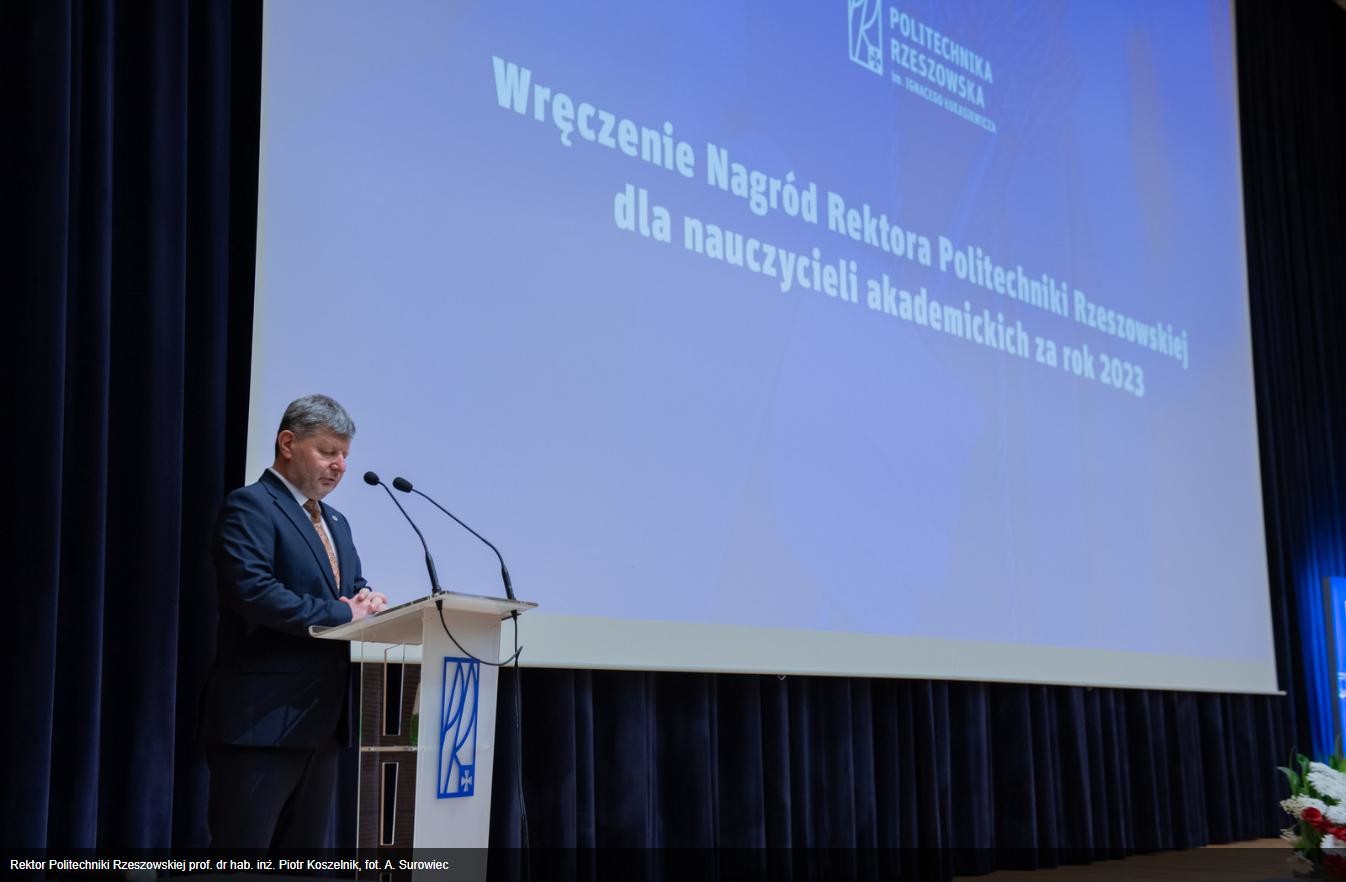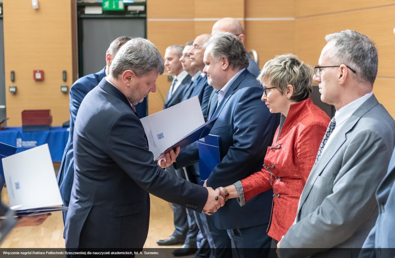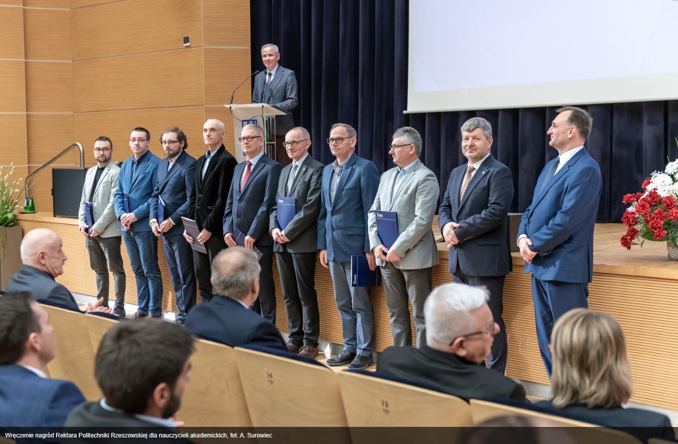 W dniu 5 grudnia 2024r odbyło się uroczyste wręczenie dyplomów nagród Rektora PRz pracownikom, którzy w 2023 roku odznaczyli się osiągnięciami naukowymi, dydaktycznymi i organizacyjnymi. Wśród wyróżnionych znaleźli się pracownicy Katedry Metrologii i Systemów Diagnostycznych: prof. dr hab. inż. Mykhaylo Dorozhovets, dr hab. inż. Robert Hanus prof. PRz, mgr inż. Magdalena Nizioł, dr inż. Anna Szlachta prof. PRz i dr inż. Jakub Wojturski.