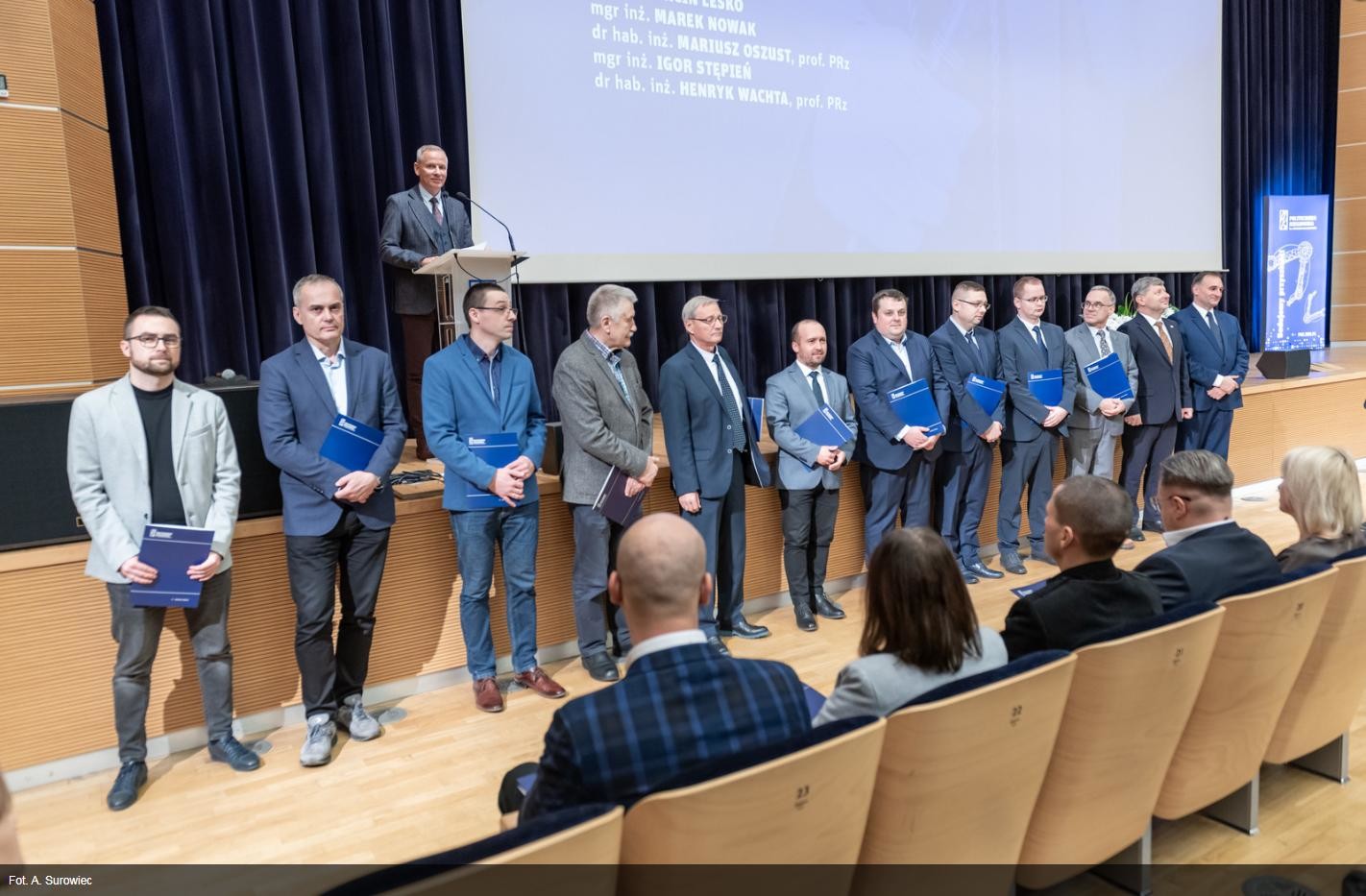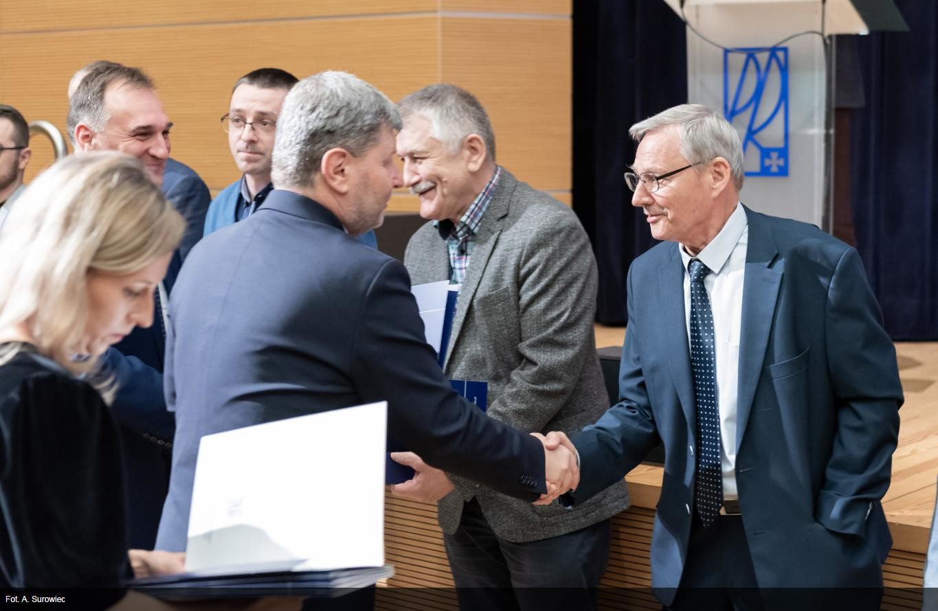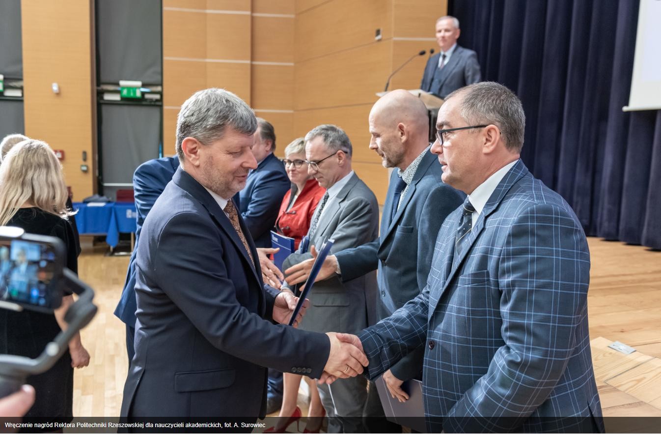 W dniu 5 grudnia 2024r odbyło się uroczyste wręczenie dyplomów nagród Rektora PRz pracownikom, którzy w 2023 roku odznaczyli się osiągnięciami naukowymi, dydaktycznymi i organizacyjnymi. Wśród wyróżnionych znaleźli się pracownicy Katedry Metrologii i Systemów Diagnostycznych: prof. dr hab. inż. Mykhaylo Dorozhovets, dr hab. inż. Robert Hanus prof. PRz, mgr inż. Magdalena Nizioł, dr inż. Anna Szlachta prof. PRz i dr inż. Jakub Wojturski.