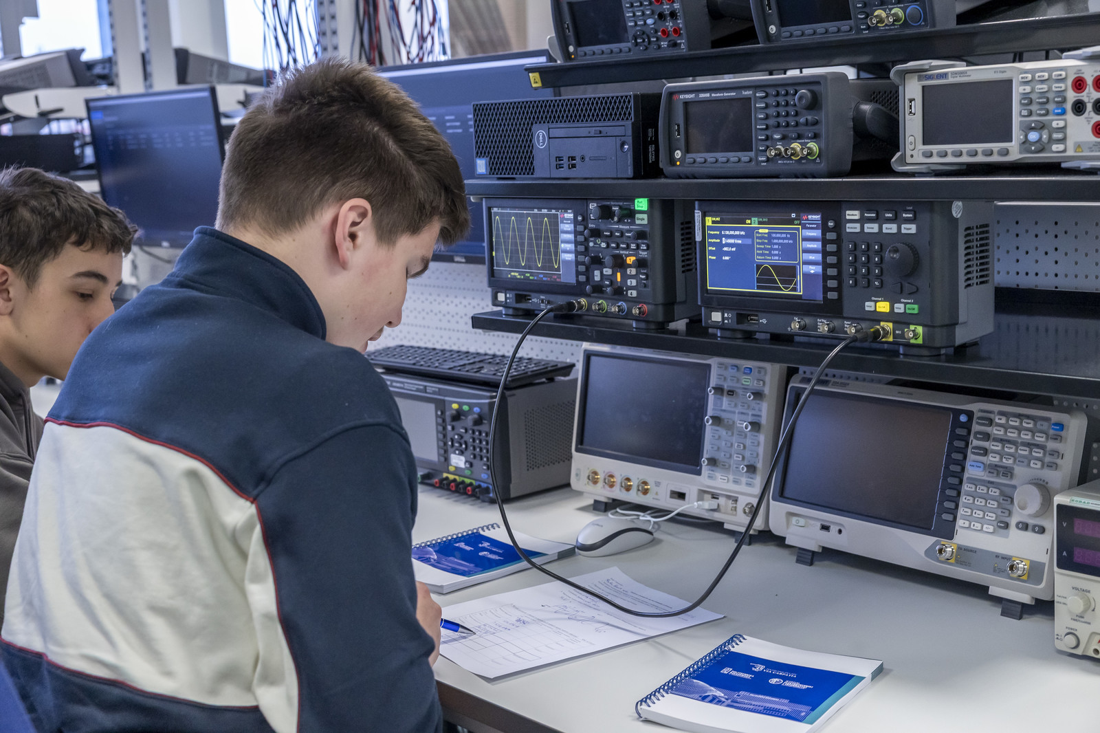 W dniu 27 marca 2026 w ramach Dnia Otwartego PRz odbyły się warsztaty pod nazwą „Pomiary na oscyloskopie cyfrowym”. W warsztatach uczestniczyli uczniowie klasy pierwszej ZSEn kształcący się w zawodzie „Technik elektryk”. Podczas zajęć uczniowie nabyli praktyczne umiejętności nastawiania na generatorze funkcyjnym sygnałów o zadanych parametrach, przygotowania oscyloskopu cyfrowego do pracy oraz pomiaru wybranych parametrów sygnałów na oscyloskopie cyfrowym z wykorzystaniem różnych metod pomiarowych.