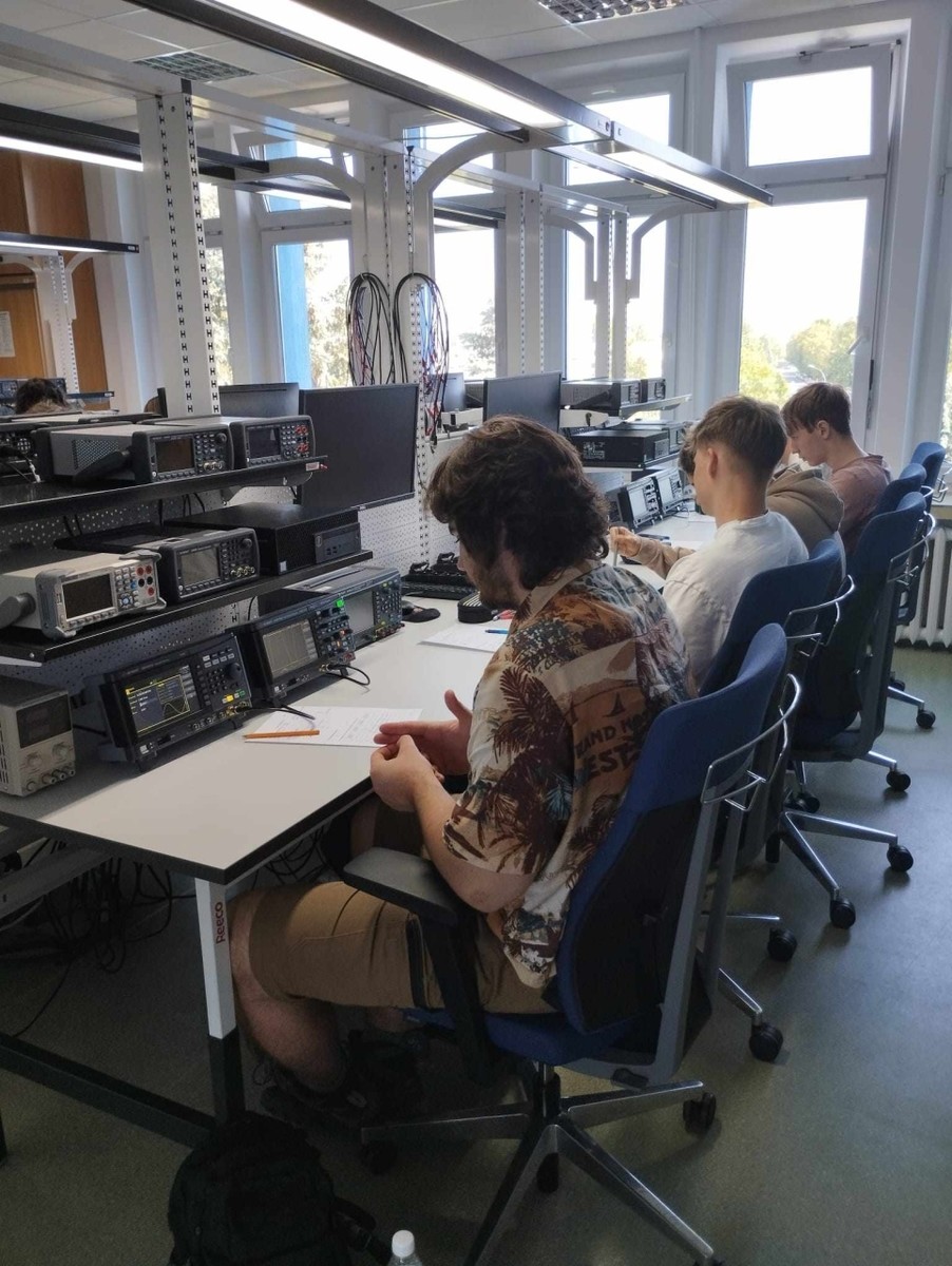 W dniu 17 maja 2024 w KMiSD odbyły się zajęcia warsztatowe zorganizowane dla uczniów IV Liceum Ogólnokształcącego im. Mikołaja Kopernika w Rzeszowie. Podczas spotkania osoby szczególnie zainteresowane fizyką miały okazję na doskonalenie swoich umiejętności obsługi oscyloskopu oraz poszerzenie kompetencji związanych z wykonaniem pomiarów napięcia i ustawianiem podstawy czasu.